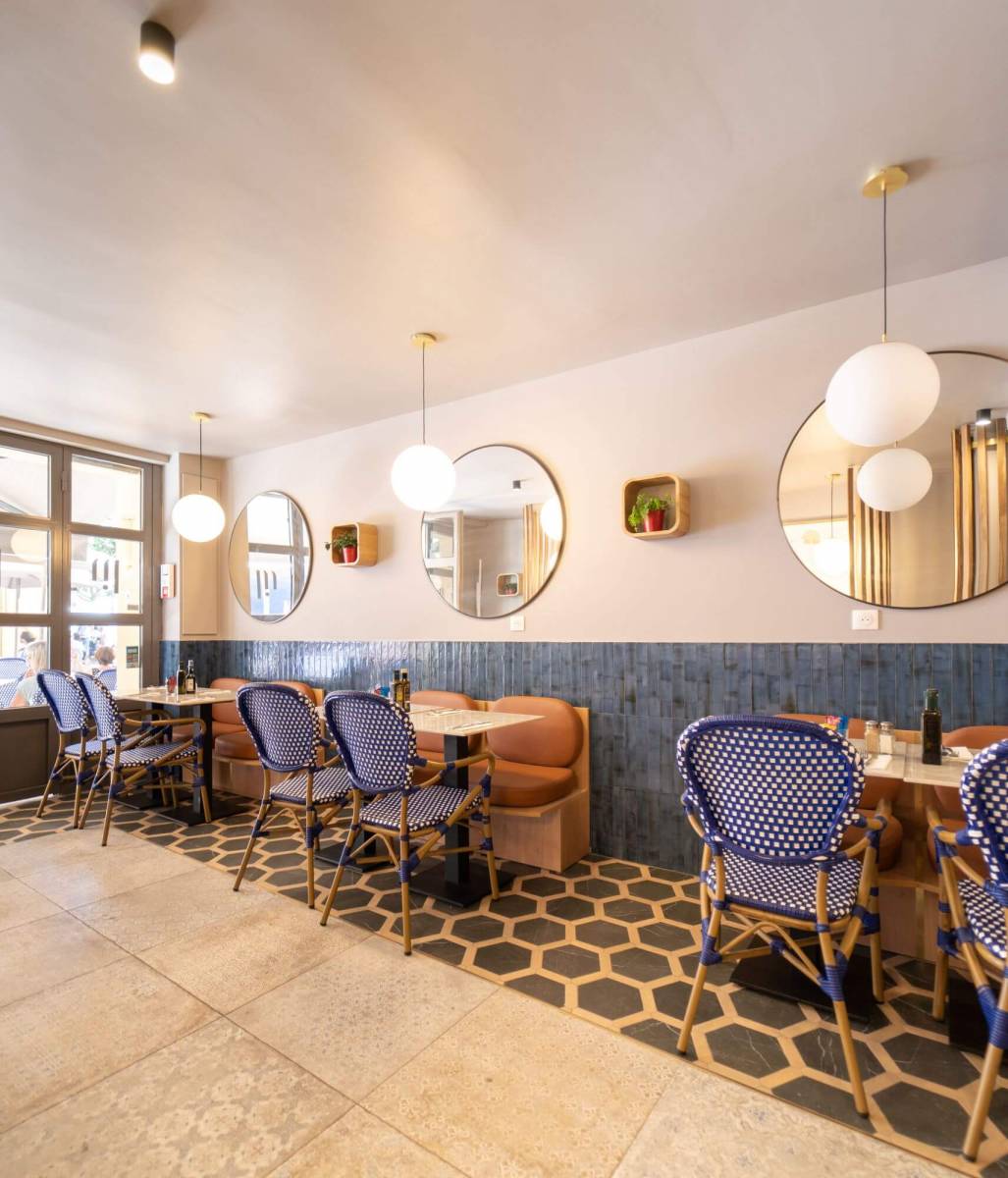 Nous avons été sollicités par ce restaurant pour aménager l'intérieur et extérieur du restaurant suite aux travaux tout en restant dans un esprit Méditerranéen.