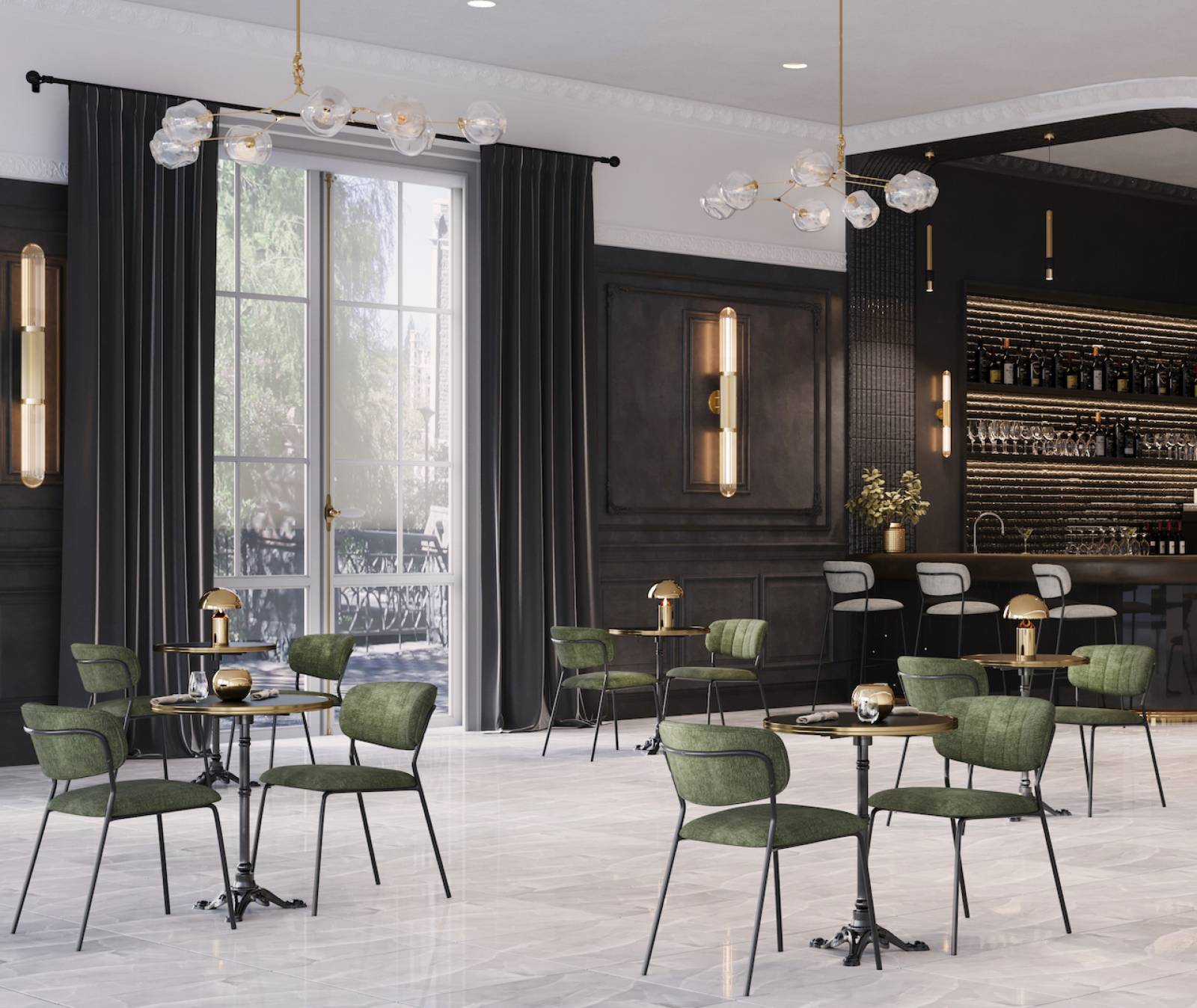 La chaise d’intérieur Tokyo incarne l'élégance moderne pour les restaurants, arborant un style industriel avec sa structure métallique noire et une assise ainsi qu’un dossier entièrement revêtu de tissu Aragon. Confortable et légère, elle s'adapte parfaitement à tout type d'ambiance intérieure.
