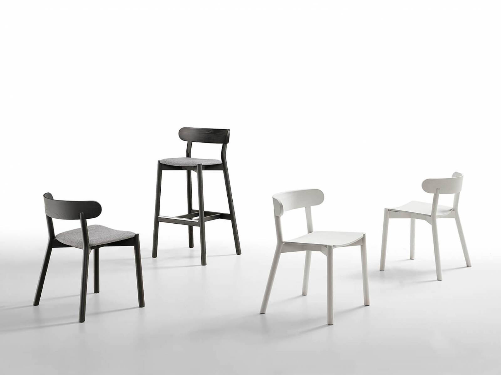 Cette chaise de la collection Montera par MIDJ vous offre une grande stabilité de par ses quatre pieds et sa structure en bois. Ce modèle est personnalisable au niveau de la structure ainsi que du revêtement.
