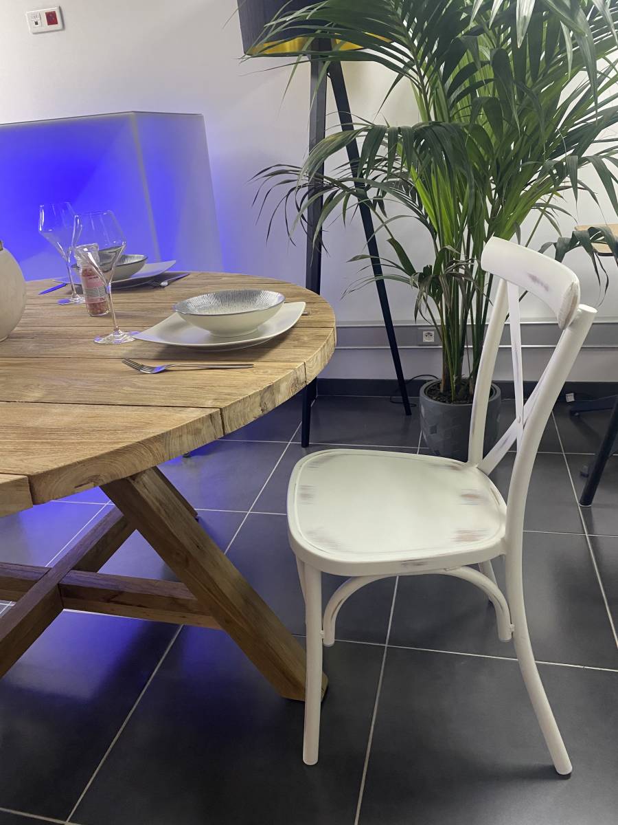 La chaise de repas de la collection Lisa apportera une touche de vintage à votre extérieur grâce à sont aspect usé.