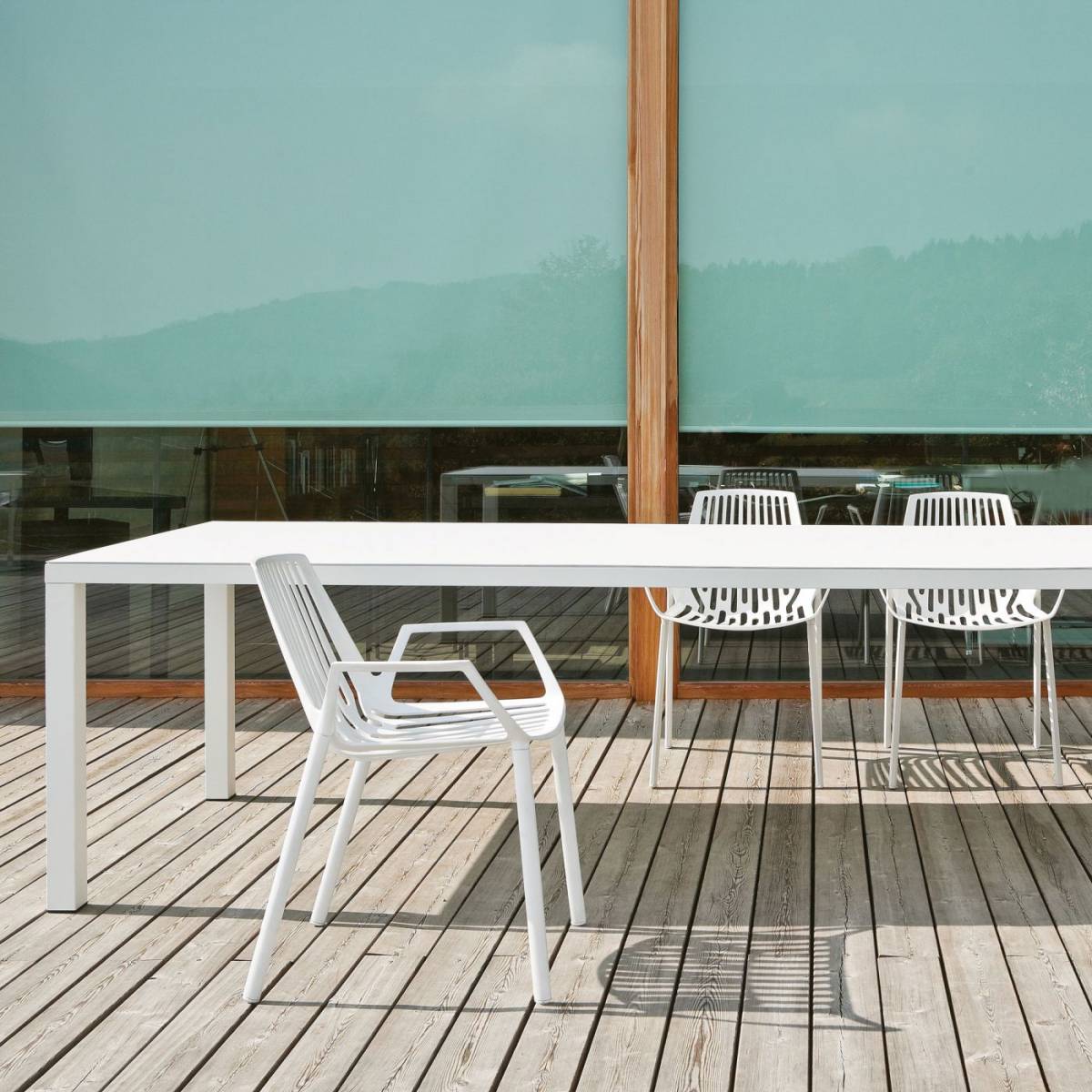 Cette chaise de repas de la collection Rion est composée à base de matériaux solides et résistants. En effet sa structure en aluminium vernis garantit une forte robustesse. Sa peinture epoxy empêche, quant à elle, toute apparition de rayures, impacts ou encore de décoloration. Ce produit est idéal pour un établissement à but commercial du fait de sa facilité d’entretien, sa fonction empilable offrant un gain de place ainsi que sa forte durabilité dans le temps. Son design unique zébré apportera une touche de nouveauté et de modernité à votre extérieur. Ce modèle est disponible en diverses couleurs et avec ou sans accoudoirs. Pour plus de confort il est recommandé d’optez pour le modèle équipé des accoudoirs.