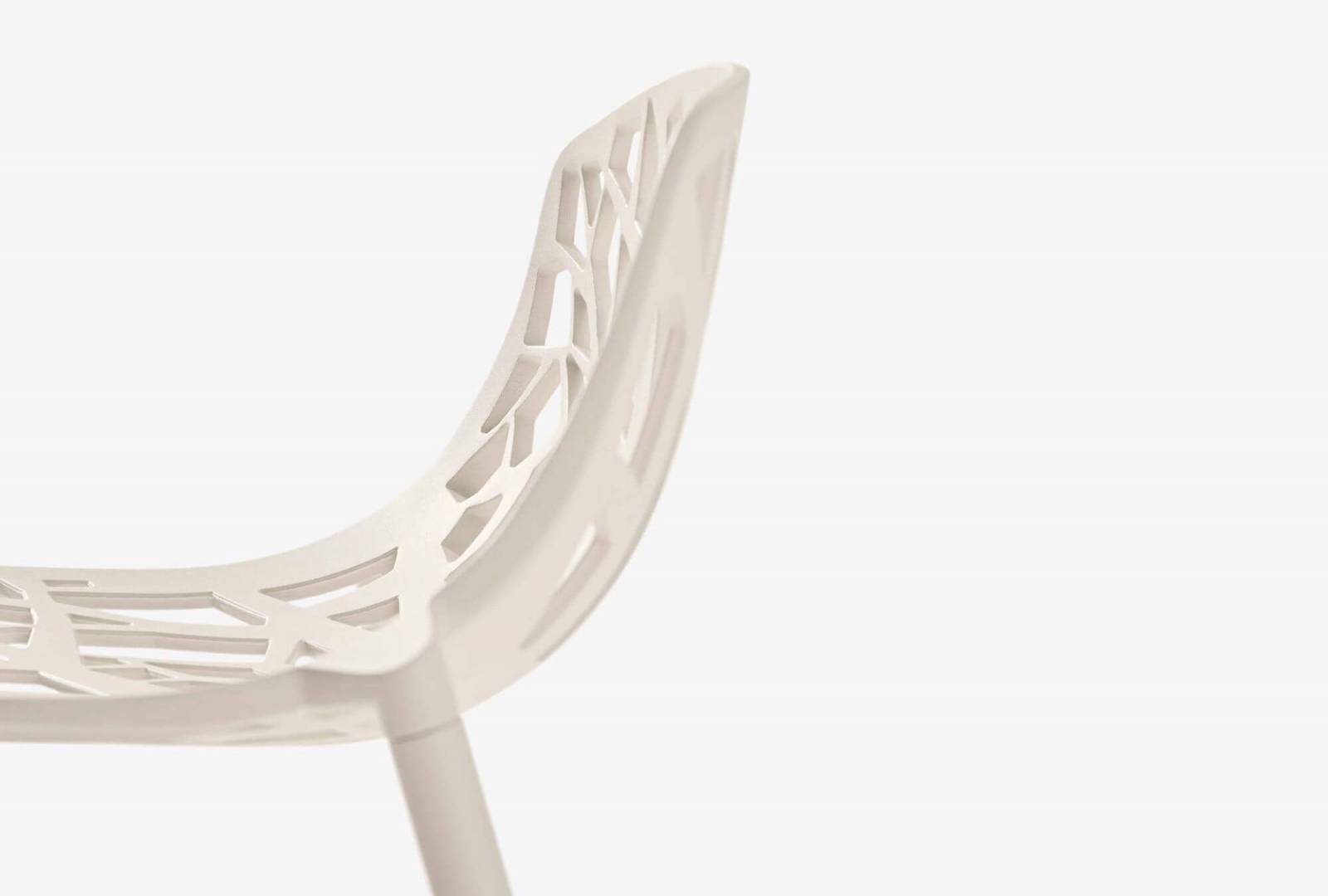 Ce tabouret de la collection Forest est équipé d’un dossier ainsi que d’un repose pieds ce qui apporte un certain confort. Les matériaux utilisés pour ce produits sont à la fois résistant et facile d’entretien. En effet l’aluminium vernis recouvert de peinture epoxy permet une grande robustesse face aux rayures, chocs ou encore aux UV. Son style futuriste apportera de la lumière ainsi qu’une touche de modernité à votre extérieur. Le décor de la chaise créer une optique de forêt. Afin de compléter et d’harmoniser votre ensemble, optez pour le fauteuil ainsi que la chaise Forest.