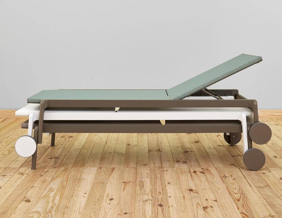 Chaise longue inclinable et empilable en aluminium thermolaqué et polypropylène collection Lago :
