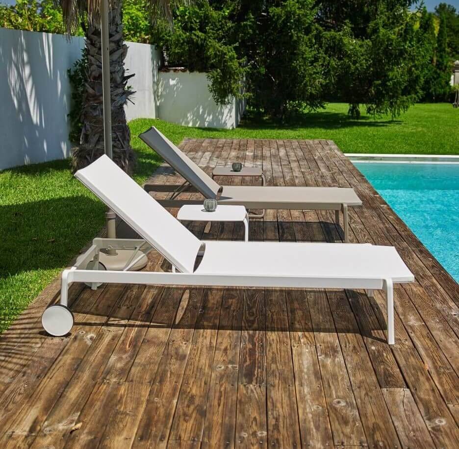 COLLECTION : Lago Chaise longue de piscine avec roues en caoutchouc et inclinable. Léger, confortable, respirant et très résistant. Avec pieds en polypropylène renforcé de fibre de verre, pour une plus grande durabilité et une utilisation sur tout type de surface. Des lignes épurées et des couleurs naturelles sur votre terrasse ou votre espace piscine.
