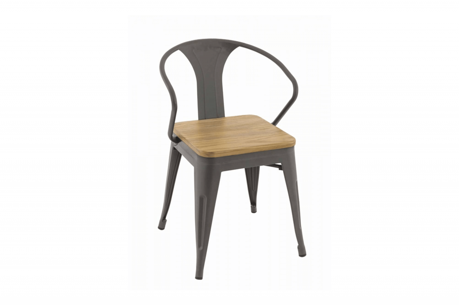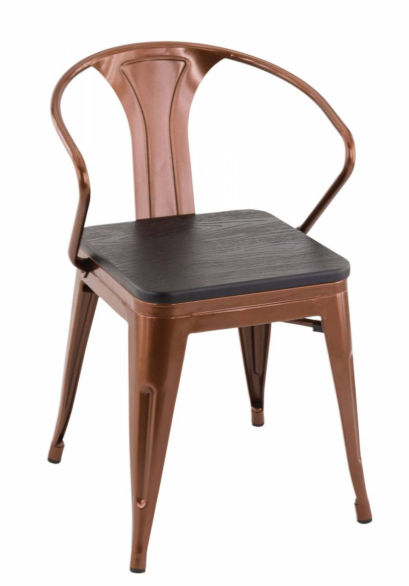 Ce fauteuil de repas de la collection Gala vous offre un certain confort par ses accoudoirs métalliques. Cette pièce offre une ambiance vintage de par ses finitions en bois au niveau de l’assise.