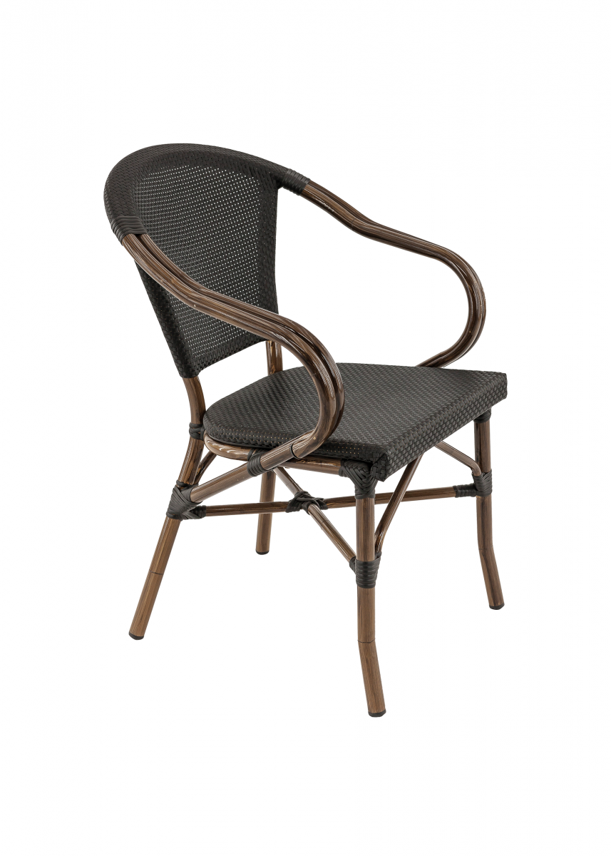 La chaise de repas de la collection Maxim apportera un style bistrot à votre ensemble grâce à sa structure couleur bois ainsi qu’avec son tissage en textilène.