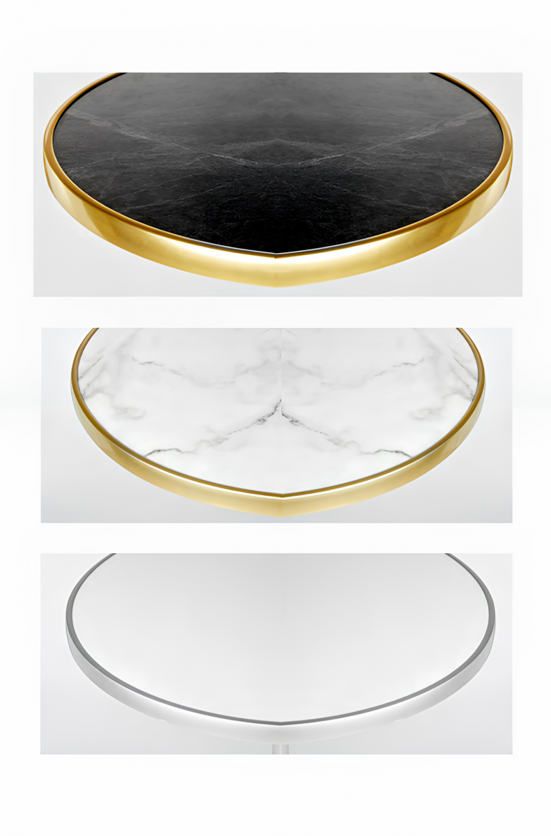 Ce plateau de table d'extérieur ou intérieur est conçu pour allier durabilité et style. Fabriqué en contreplaqué marine avec une feuille de stratifié haute pression dans la finition de votre choix, il résiste à l'humidité, aux déformations et à l'usure quotidienne. L'élégant cercle en aluminium anodisé ajoute une touche d'élégance moderne et protège davantage les bords des éléments.