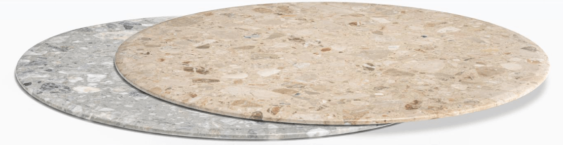 Les flocons et les grains des marbres les plus fins sont mélangés avec des résines soigneusement sélectionnées et certifiées pour le contact avec les aliments, pour obtenir des surfaces uniformes, polyvalentes et techniquement avancées. Les plateaux en marbre aggloméré, disponibles en différentes couleurs et granulométries, donnent une touche raffinée à tout type d'environnement. Disponible en différentes finitions, formes et tailles avec bord plat ou arrondi, épaisseur 12 mm.