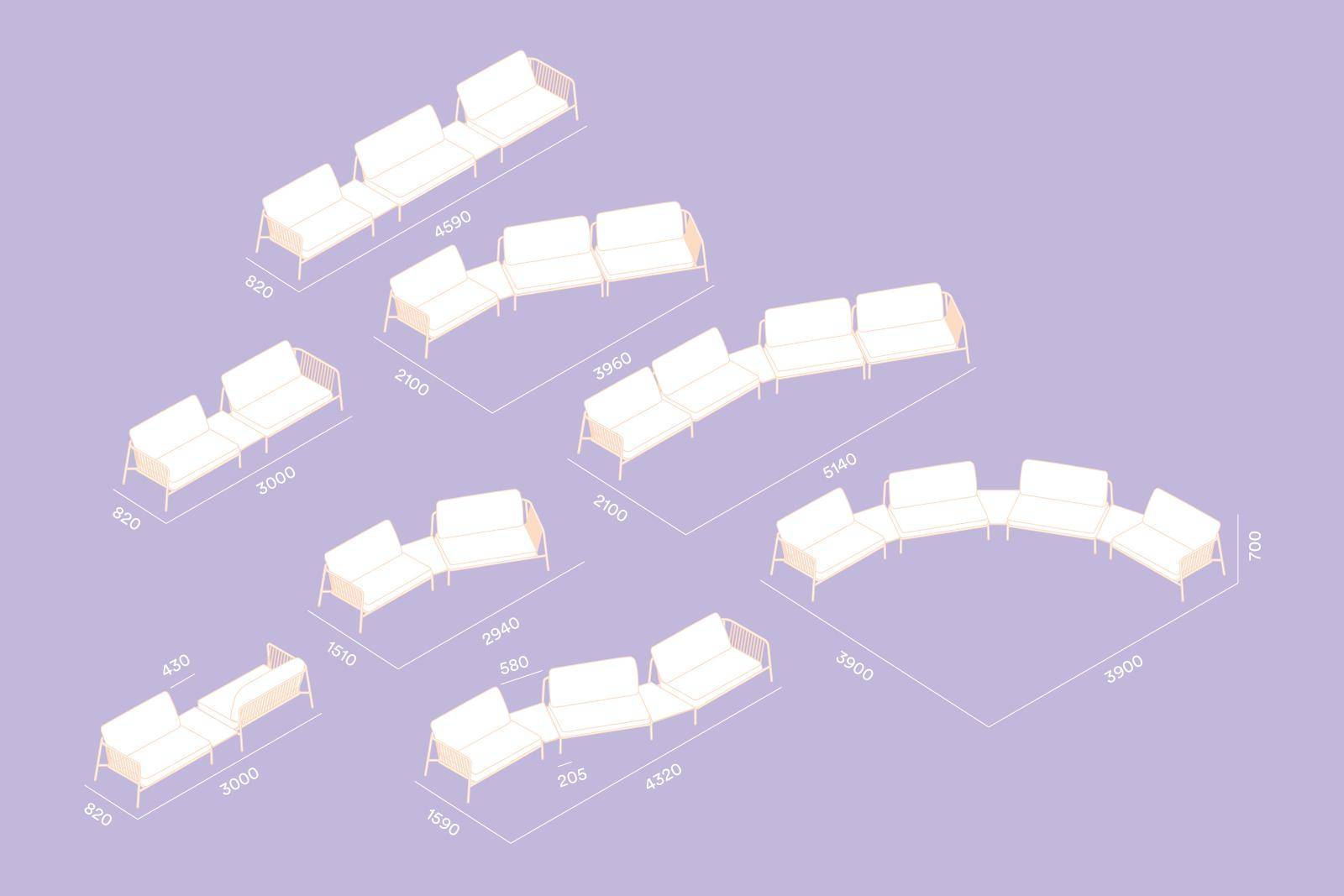 Dimensions du salon de jardin 100% modulable en acier collection Nolita