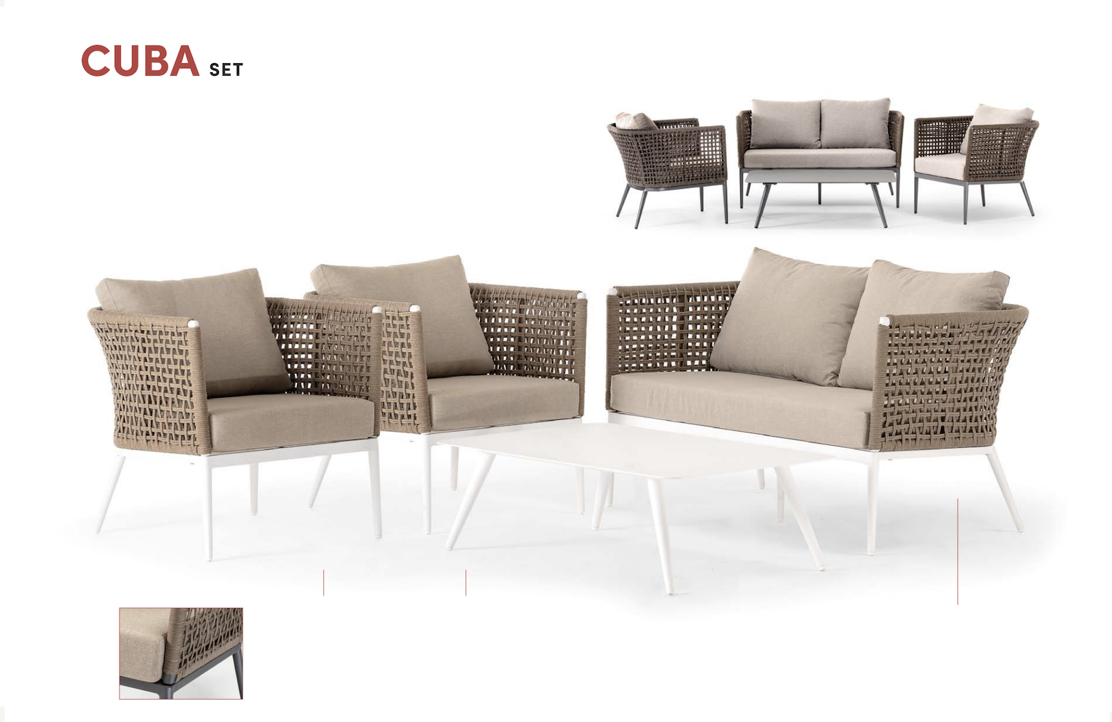 Caractéristiques du set de jardin en corde et aluminium collection Cuba :